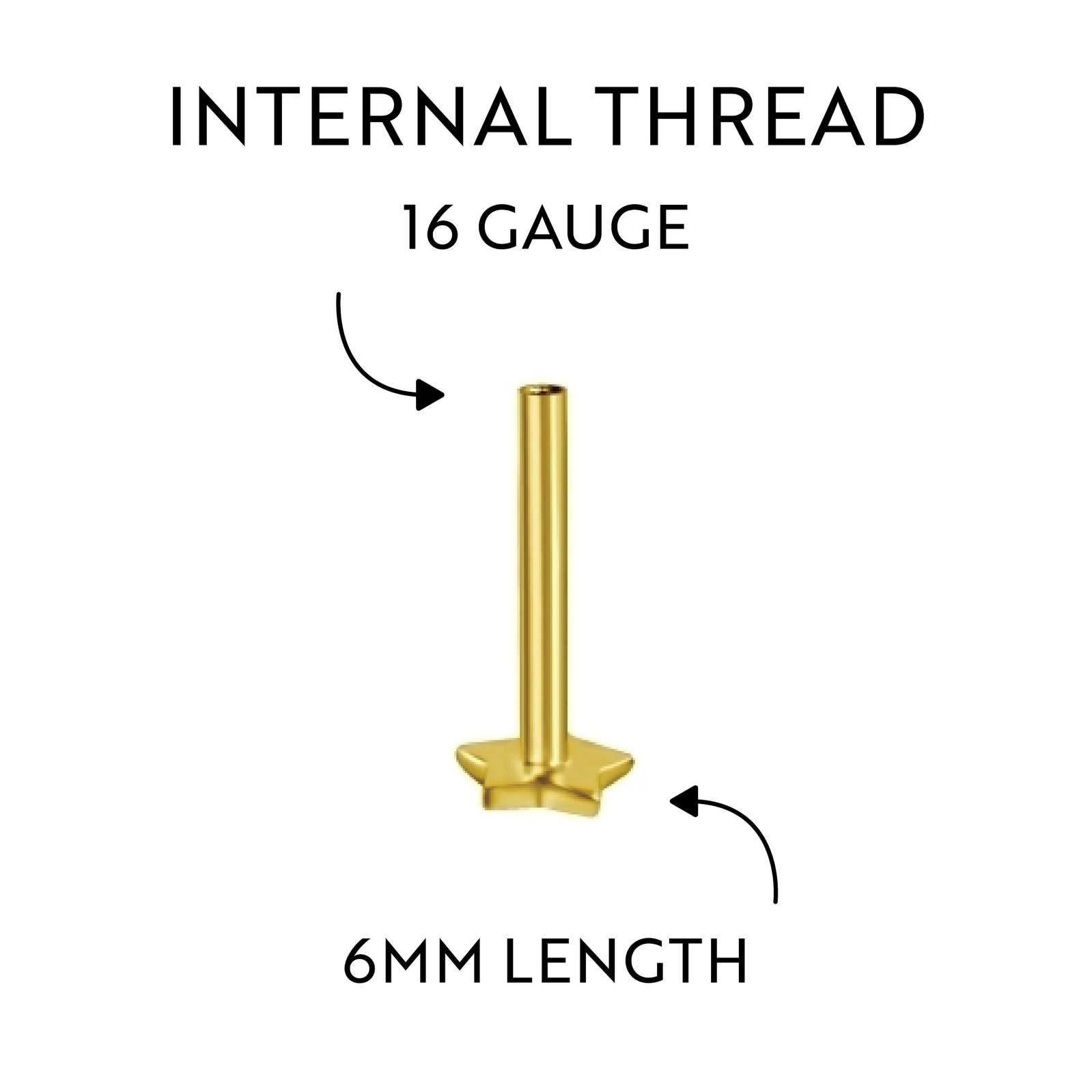 18K Gold Internal Thread Flat Back Star Labret Post 16 Gauge - 6mm