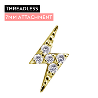 18k Gold - Lightning Flash Premium Zirconia - Left - 7mm Threadless Attachment