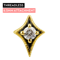 18k Gold - Premium Zirconia Diamond Star - 6.5mm Threadless Attachment