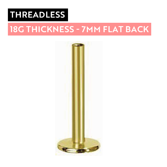 18K Gold Threadless Flat Back Labret Post 18 Gauge - 7mm