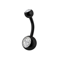 Black Steel Double Jewelled Belly Ring 14 Gauge - 12mm