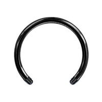 This circular barbell also referred to as a horseshoe is made from Black PVD coated solid Titanium. The highest quality materials have been used in the making of this piece and guarantee high skin tolerability and won’t tarnish or wear off. This 16 gauge barbell is suitable for tragus, septum, smiley, daith and rook piercings.