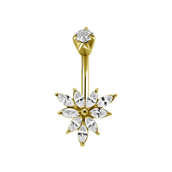 Gold Steel Belly Ring - Cubic Zirconia Marquise 14 Gauge - 8mm