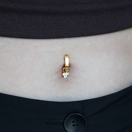 A playful twist on a classic belly ring, this D-ring features a sparkling cubic zirconia trinity charm for effortless style and shine. Made for those who love to show off their belly jewellery, it adds the perfect touch of sparkle to any outfit. Lightweight, comfortable, and durable, it’s the ideal piece to elevate your belly piercing with a bit of fun flair.