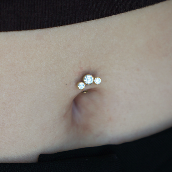 Gold Titanium Threadless Attachment - Cubic Zirconia Bezel Set Trio