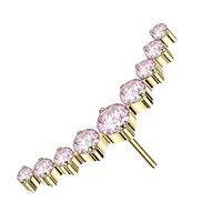 Gold Titanium Threadless Attachment - Pink Cubic Zirconia Clawset Cluster