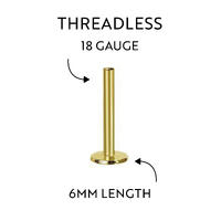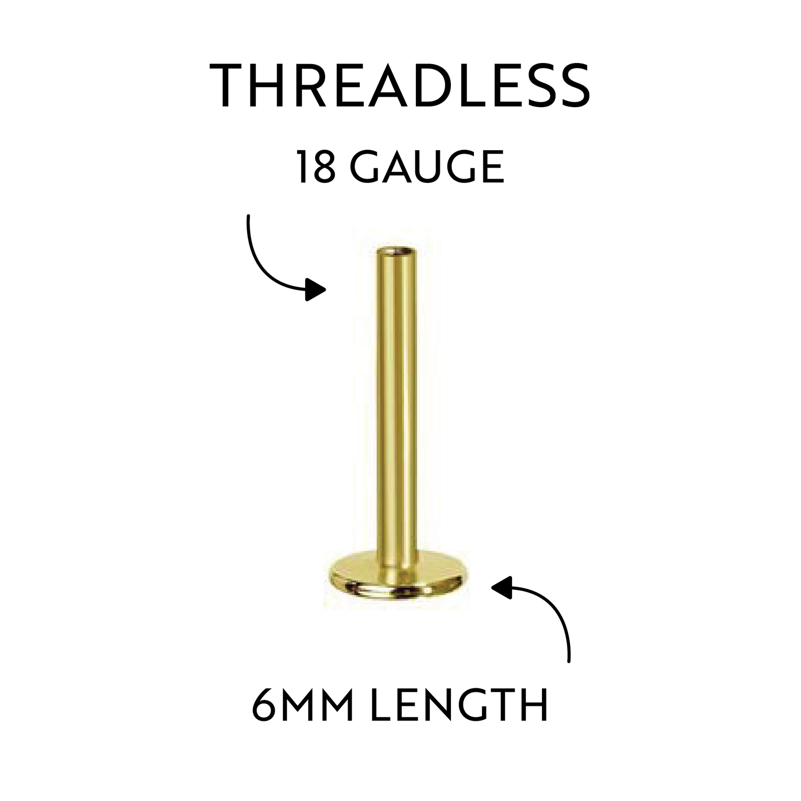 Gold Titanium Threadless Flat Back Labret Post 18 Gauge - 6mm