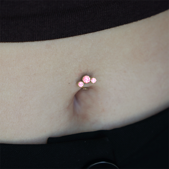 Gold Titanium Threadless Floating Belly Attachment - Pink Cubic Zirconia Bezel Set Trio