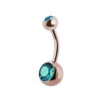 Rose Gold Steel Double Jewelled Belly Ring - Aqua Crystal 14 Gauge - 10mm