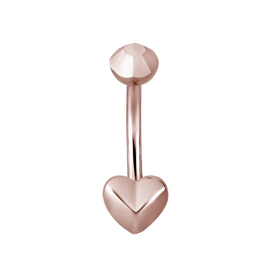 Rose Gold Steel Faceted Heart Belly Ring - Faceted Top Ball 14 Gauge - 8mm