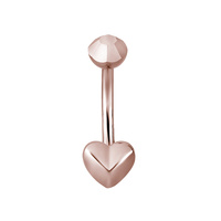 This stunning belly bar made of Rose Gold PVD coated SS316L surgical steel featuring a warming faceted Heart Design with a faceted top ball. Externally threaded in 8mm and 10mm lengths.
