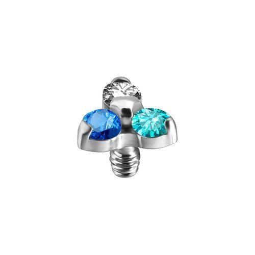 This internally threaded labret attachment is made from SS316L Surgical Steel. This multi-coloured trinity design with 3 premium cubic zirconia is sure to sparkle and will fit into any 16 or 18 gauge internally threaded labret post. It is suited for a variety of piercings from lobes, tragus, helix, cartilage and conch.