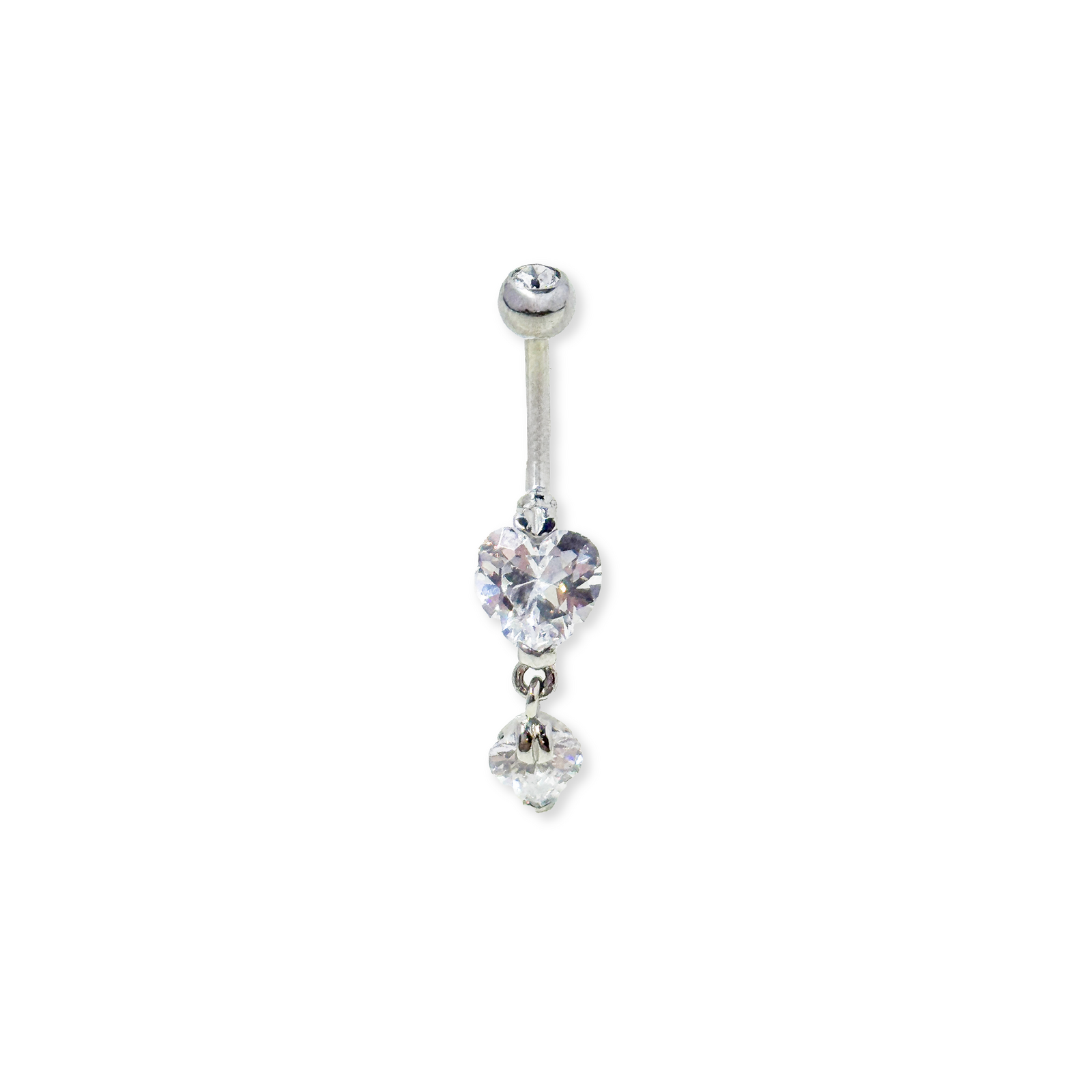 Surgical Steel Belly Ring - Crystal Jewelled Heart Jewellery Charm 14 Gauge - 8mm