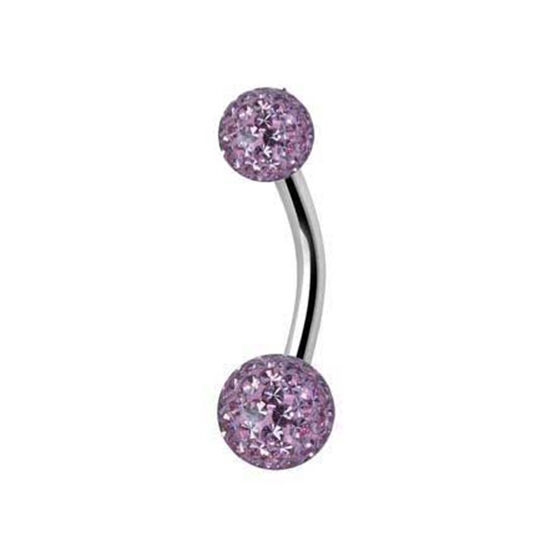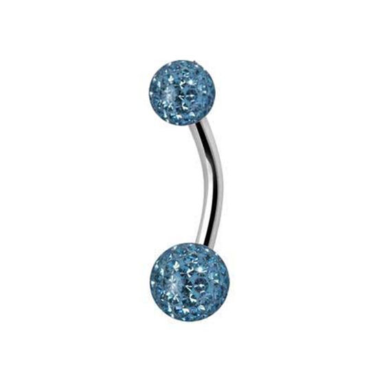 Sparkle from every angle with this belly bar with epoxy crystal balls on both ends is made of SS316L Surgical Steel. The crystal gem stones shine and sparkle and have beautiful colours that catch the light. This belly ring is 14 Gauge 8 or 10mm in length.