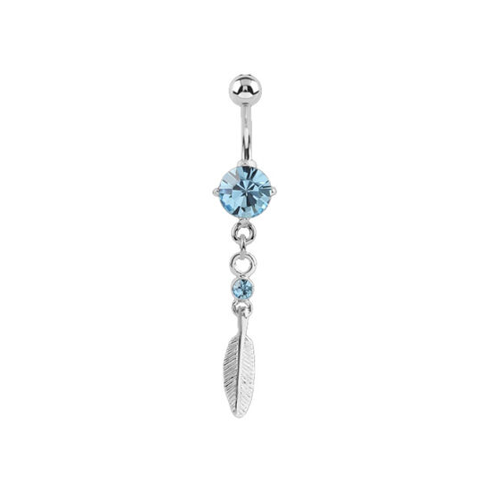 Surgical Steel Belly Ring - Aqua Jewel and Feather Jewellery Charm 14 Gauge - 10mm