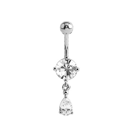 Surgical Steel Belly Ring - Pear and Round Cubic Zirconia 14 Gauge - 8mm