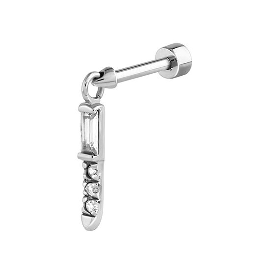 Surgical Steel Flat Back Labret Baguette 3 Stone Prong Set Bar Jewellery Charm - Cubic Zirconia
