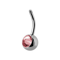 This stunning belly bar post made of SS316L Surgical Steel with a beautiful round crystal is a perfect everyday piece. This banana barbell made for a belly piercing, features a 6mm crystal bottom that will sparkle from every angle. This is called a mini belly bar because of the smaller balls and looks more petite.
