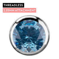 Add a touch of sparkle to your look with this elegant 2.35mm Aqua Premium Zirconia threadless attachment. Crafted from implant-grade titanium, this piece is both lightweight and durable, making it perfect for everyday wear. The brilliant aqua zirconia stone catches the light beautifully, offering a vibrant pop of colour that complements any piercing style.