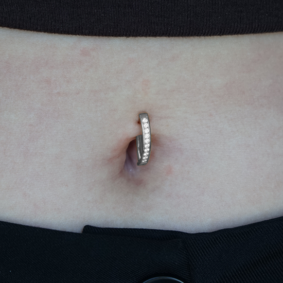 This sparkling belly ring features a sleek D-shaped design lined with channel-set cubic zirconia for a modern, eye-catching look. Made from high-quality titanium, it’s lightweight, durable, and perfect for everyday shine. A fun and stylish choice for anyone wanting a little extra sparkle in their belly piercing.