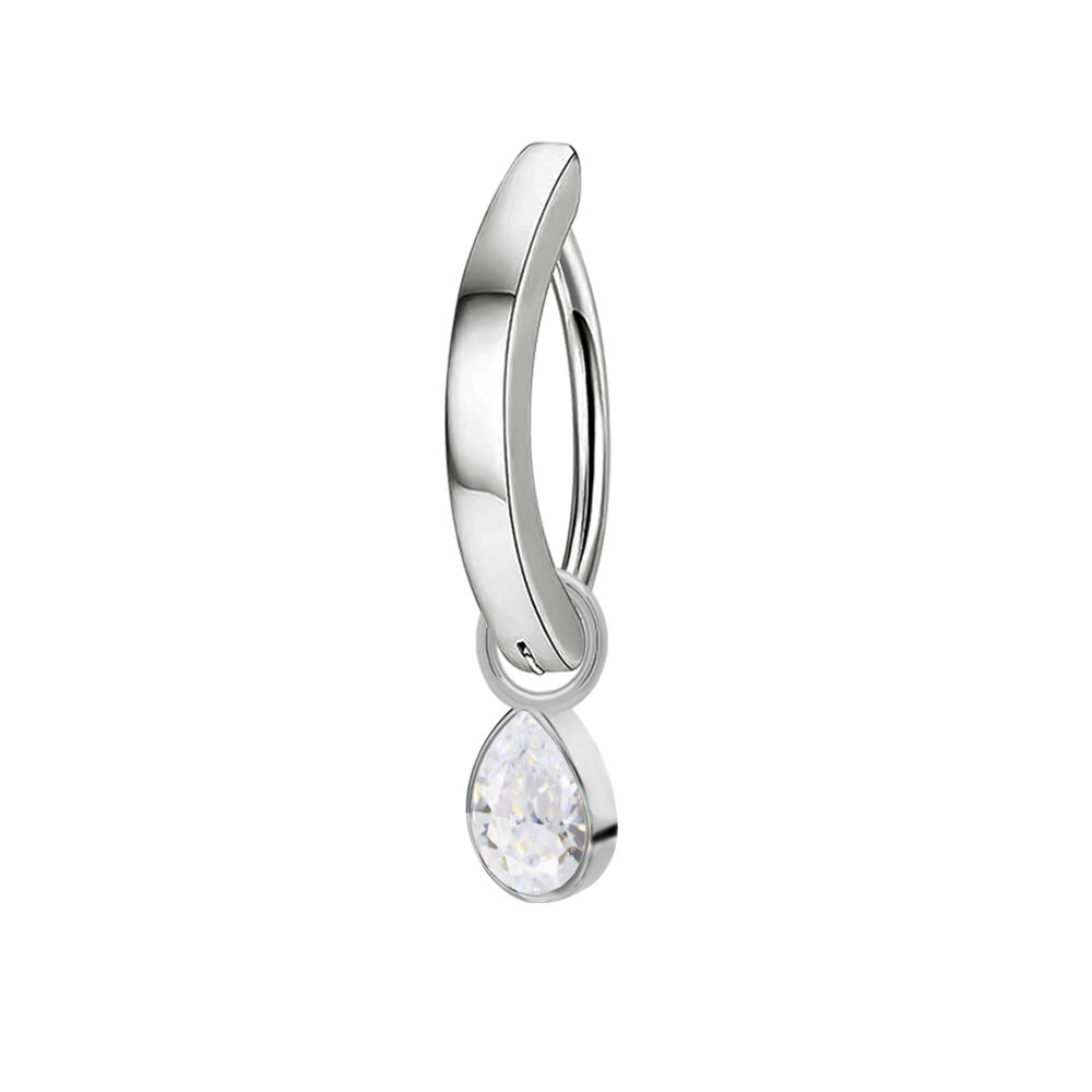Titanium Belly 'D' Ring - Cubic Zirconia Pear Charm - 14 Gauge - 10mm