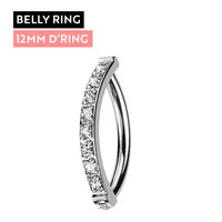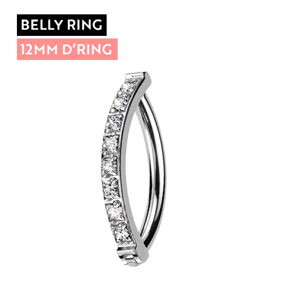 Titanium Belly 'D' Ring - Square Set Cubic Zirconia - 14 Gauge - 12mm