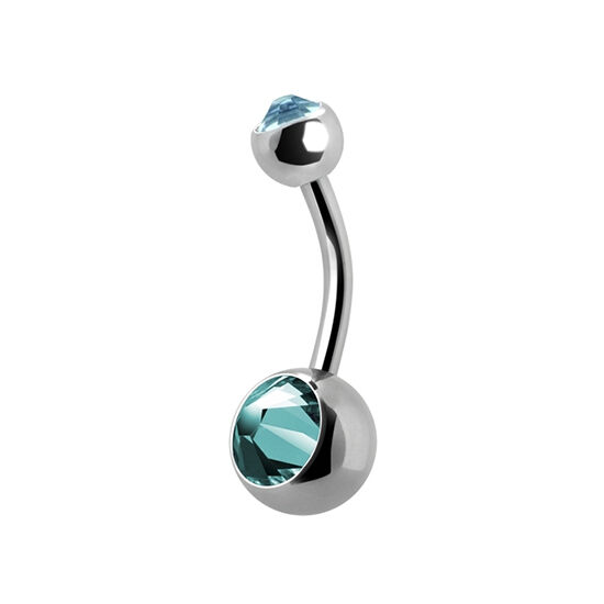 Titanium Double Jewelled Mini Belly Ring - Aqua Crystal 14 Gauge - 6mm