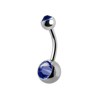 This belly bar is made from solid Titanium (Ti6AL-4V ASTM F136). Featuring a 6mm crystal ball bottom and a 4mm crystal topped ball, this piece will sparkle from every angle.